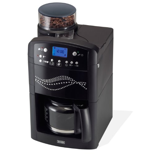Zusatzinformation: Qualität trifft Style und glamouröses Design, Elektronisch gesteuerte Kaffeemaschine in perlschwarzem Hartlack und mit 117 Stück funkelnden, handgesetzten SWAROVSKI ELEMENTS, Lifestyle für Individualisten mit dem gewissen Chic in der Küche, wahlweise mit Mahl- & Brüh- oder nur mit Brühfunktion, Wärmhalteplatte mit Autostopp-Funktion (automatische Abschaltung nach ca. 2 Stunden), mahlt die gewünschte Menge an Kaffeebohnen und transportiert den gemahlenen Kaffee zum Filter, mit 24 Stunden Zeitschaltuhr für zeitversetztes Mahlen und Brühen oder nur Brühen, mit langem, im Gehäuse verstaubarem Stromkabel, mit ca. 1,5 Liter Wassertank mit Wasserfüllstandsanzeige und ca. 125 g Vorratsbehälter für Kaffeebohnen, Mahlmenge von 2 - 10 Tassen per Knopfdruck einstellbar und Kaffeestärke in 3 Stufen per Knopfdruck einstellbar, mit automatischer Filterwechselanzeige; Aktiv-Kohlefilter auch separat erhältlich, die Hintergrundbeleuchtung schaltet sich ca. 60 Sekunden nach der letzten Tastenbetätigung automatisch aus,